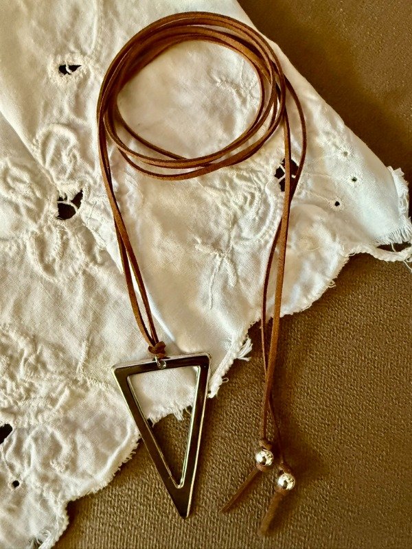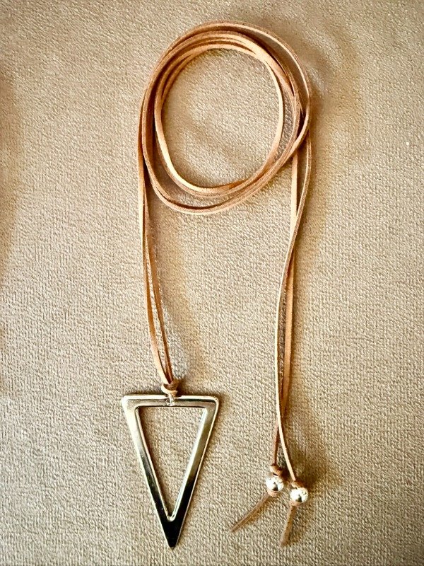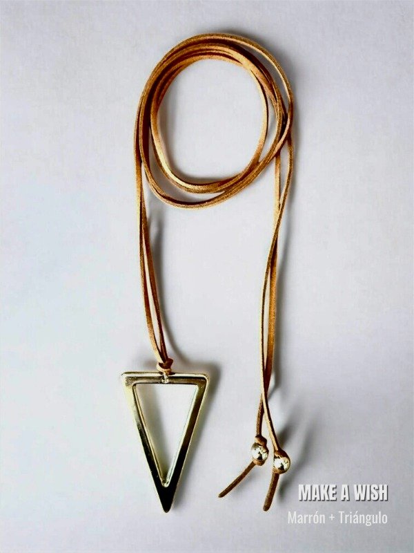 Choker de gamuza marrón con dije triángulo grande, ideal para elevar tu estilo y tu energía