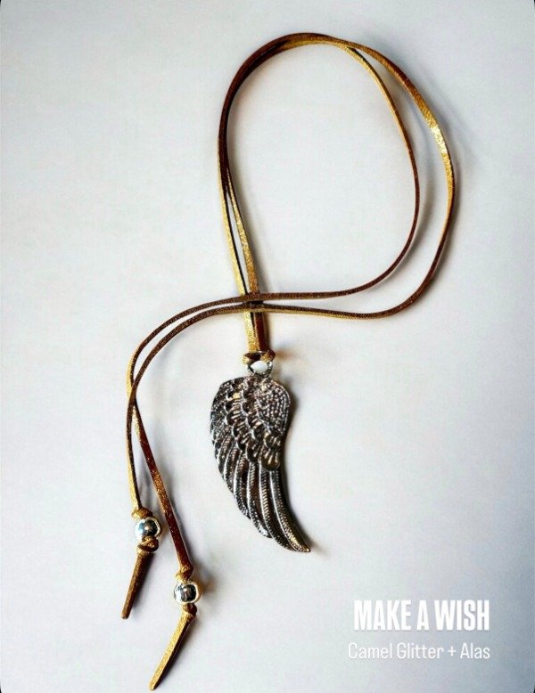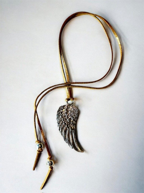 Choker de gamuza marrón con dije de ala de ángel, perfecto para acompañarte con estilo y buena energía