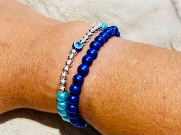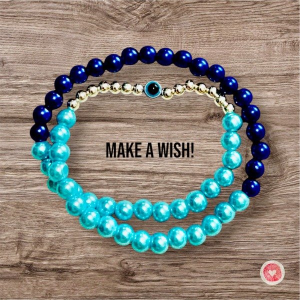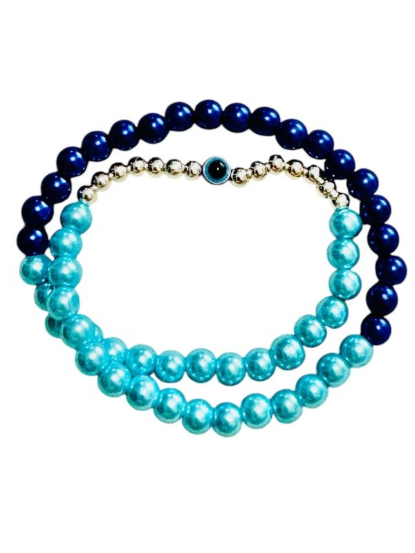 Exclusivo diseño doble de bolitas de 6mm de perlas de vidrio con un ojo turco central.